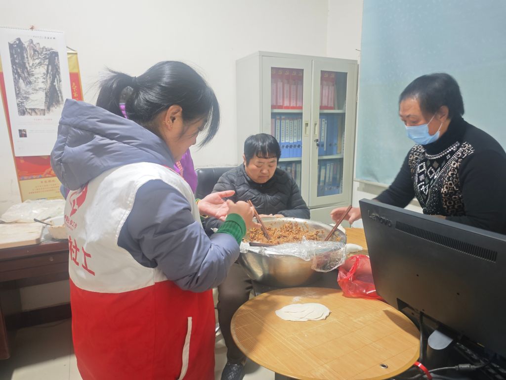 为了弘扬中华民族敬老爱老的传统美德,丰富老年人精神文化生活,使老年人深入了解传统文化的魅力,感受到过年的欢乐与温馨。1月23日,五峰山社工站联合邱庄村开展“猜谜包饺送春联,乡村年味满心间”的活动,活动主要包括猜谜语、送春联、包水饺等一系列充满年味的项目。