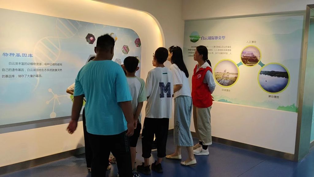 7月15日一早,社工便驱车前往孩子们家中,从家长手中接过孩子,带领孩子们来到白云湖湿地科普馆。