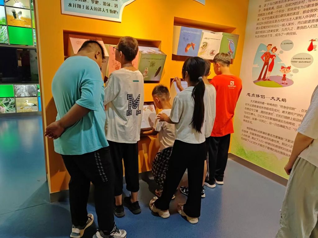 走进鸟类展馆,孩子们纷纷表达自己见过和喜欢的鸟类,随着深入,讲解员更是向大家讲解了栖息在白云湖湿地内的各种鸟类,提高了孩子们对鸟类的兴趣。