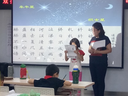 “迢迢牵牛星,皎皎河汉女。纤纤擢素手,札扎弄机杼。”甸柳第一社区益乐少年队的孩子们认真的诵读着这首经典的五言律诗。