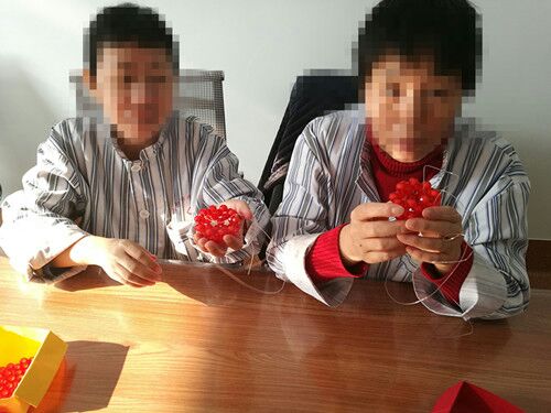 在手工编织室里,编织爱好者们正在热火朝天的串珠着平安果。在上一次的学习中,社工先让休养员们认识了下串珠,和介绍了串珠应该注意的事项以及串珠的方法。今天开始,社工将交给休养员们串珠平安果。在社工与休养员们的共同努力,完成了平安果的底部。后续社工将于休养员们一起完成平安果的制作。