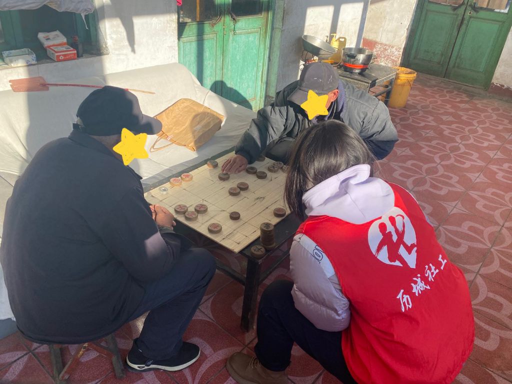 “这么走怎么行。”还没进屋,社工便听到张爷爷与正在下棋的邻居说着话,经过前几次社工带领张爷爷制作竹编画、走出家门参加如康家园活动,缓解了张爷爷的情绪,现在的张爷爷热情的邀请邻居同辈们来家和自己拉拉呱、下下棋,社工观察到张爷爷在有玩伴儿陪同下棋时,脸上露出笑脸,很喜欢现在的生活方式。