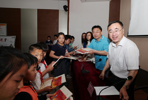 颁奖活动现场,德润中学刘俊峰老师、舜玉小学曹祖铭同学的妈妈尹冲女士、山师二附中宋雨桐同学作为代表发言。局领导为济南经十一路小学、山东师范大学第二附属中学、济南舜玉小学、济南槐荫实验小学等8所小学的30名获奖学生颁发纪念品,在活动后合影留念。