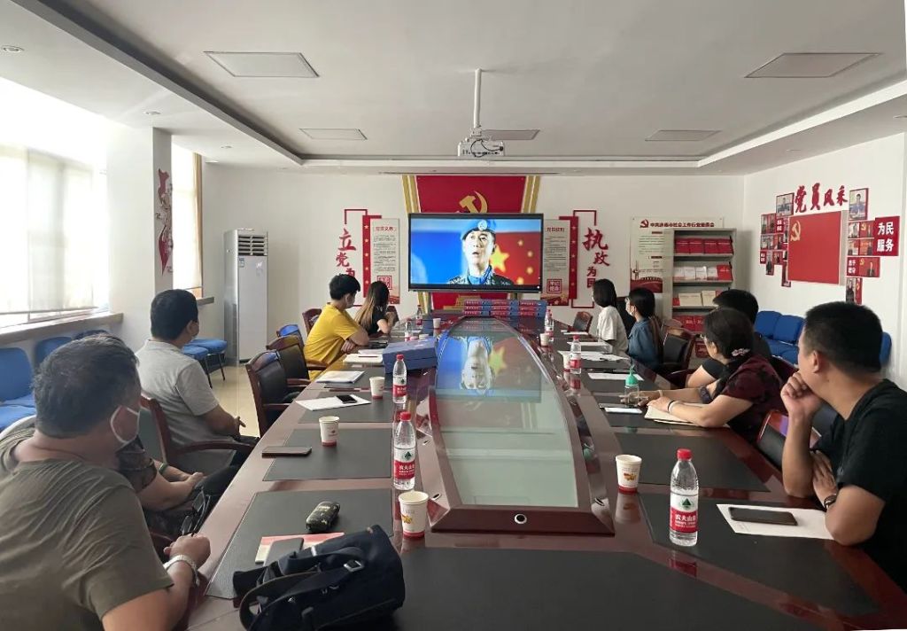 活动中,全体党员集中观看了爱国军事题材电影《中国蓝盔》,集中学习了习近平总书记在省部级主要领导干部“学习习近平总书记重要讲话精神和迎接党的二十大”专题研讨班上发表的重要讲话精神。影片《中国蓝盔》通过描写中国维和部队官兵在非洲严格履行联合国赋予的使命,派出了以“兵王”杜峰、王刚为首的作战小组冒着生命危险,阻止一场一触即发的战争的故事,反映了中国当代维和军人为世界和平与安全的崇高理想,在异国土地上用鲜血乃至生命来践行的大国担当和责任。