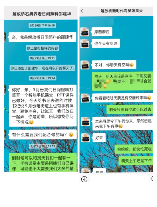 赋之所能。社工站站长李舒以长者智能互助团为切入点,介绍了社工站的功能定位、服务内容,让其更加清晰认识社工站;站长李舒介绍了社区中已有长者智能互助团开设手机教学课堂的现状,引导其在不打破组织成员教学模式的前提下,协助长者智能互助团开展智能手机教学。针对如何配合长者智能互助团成员开展智能手机教学,站长李舒利用开放空间会议技术,引导工作人员畅所欲言,针对工作人员的观点提出专业化建议。“听君一席话,我受益匪浅,在站长李舒的讲解下,我们学到了之前没有接触过的东西”这是右典照护养老工作人员对站长李舒所说的一句话。
