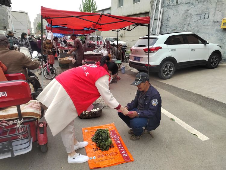在荷花路街道堰头集,社工向来往的群众发放健康知识宣传资料,为辖区老年群众提供健康咨询,介绍老年人生活常见的慢性病预防及治疗知识。同时宣传科学的衰老观念,帮助老年人认识到出现各种慢性疾病以及功能退化是增龄性改变造成的,也是必然的生理过程。