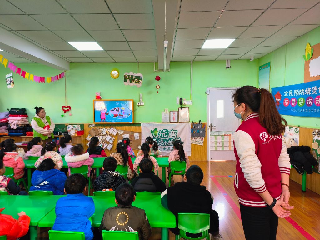 为有效预防幼儿烫伤事故的发生,让幼儿掌握预防烫伤和烫伤后的自救知识,天桥东街社工站积极链接中国社会福利基金会烧烫伤关爱公益基金,将“远离烫烫小怪兽”儿童课堂引进我们辖区的幼儿园。