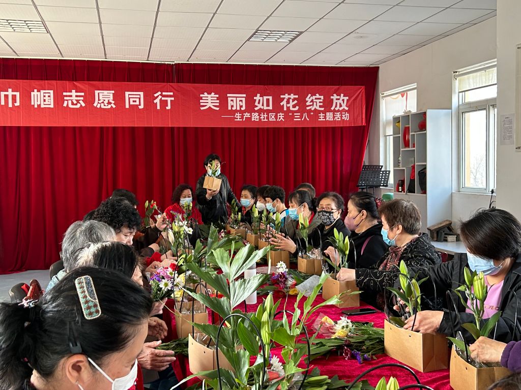 与花相伴 绽放芳华——北坦街道社工站开展“三八”妇女节插花活动