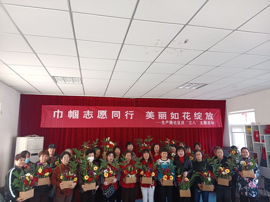最美不过三月天,花开成海,春意盎然。为庆祝“三八”国际妇女节,丰富社区妇女群众的精神文化生活,提升居民的审美修养。北坦街道社工站联合生产路社区开展“与花相伴 绽放芳华”插花活动。