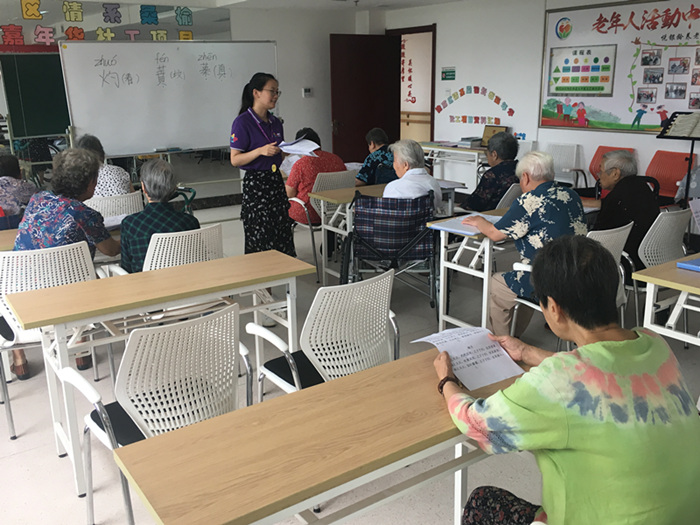“关关雎鸠,在河之洲。窈窕淑女,君子好逑。”上午还不到九点,老年大学就传来老人三三俩俩念诗的声音。自诗歌学习小组组建已经四个多月了,老人们已把其当成了自己生活的一部分,每到周四,不等社工去通知就自觉地早早来到老年大学等待活动开始。8月16日上午9点悦银龄养老社工项目组在福利中心三楼老年大学开展了“桃之夭夭,灼灼其华”诗歌学习活动。