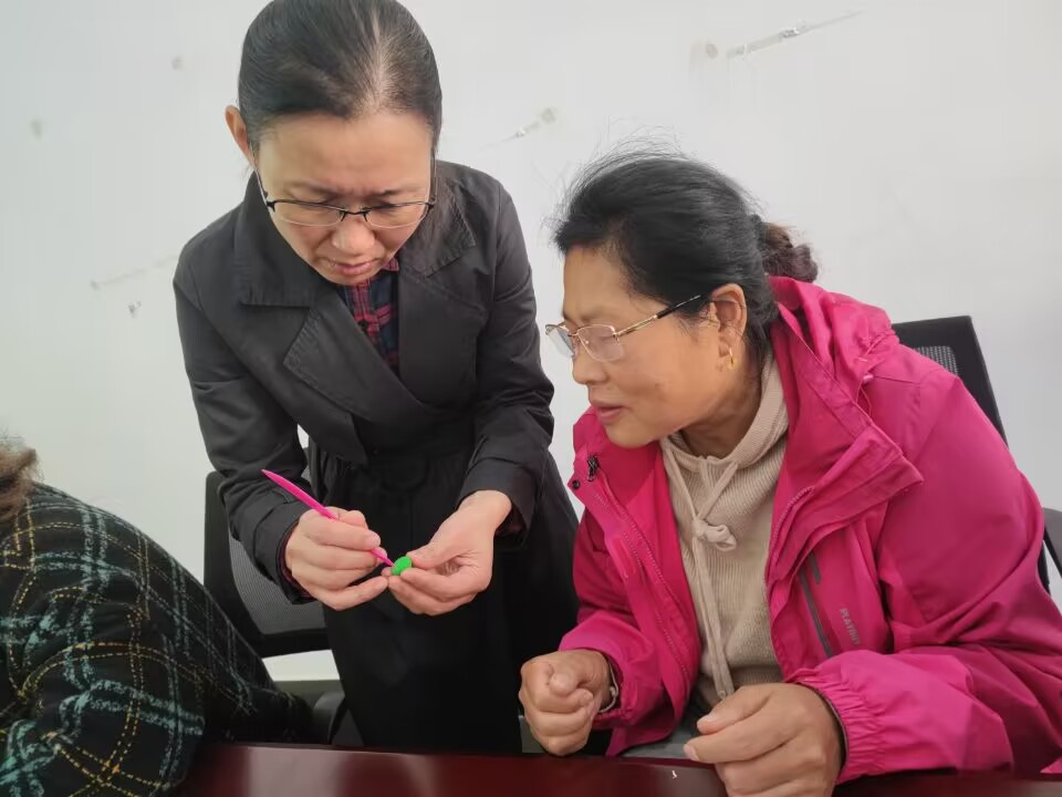 随后李老师现场进行面塑教学,配合着实际操作,一步步给大家示范面塑制作过程,并将提前准备好的制作材料分发给参与活动的每位居民。期间,李老师带领大家一起制作荷花,通过反复的揉、搓等工序,一小块面团被捏成了一朵朵鲜艳的荷花,一幅幅生动鲜艳的碧水荷花展现在眼前。