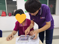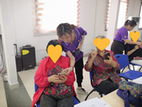 在学习中,有的失独老人不知道如何去操作就不敢用手去点,社工告知操作步骤并鼓励他们去尝试。为了让失独老人了解更多的医院公众号设置的线上服务,社工就带领他们对着其公众号的菜单一个一个的学习和操作,让失独老人们明白了医院公众号中所设置的相关服务,便于自己日后生活所需。接着,社工带领失独老人了解和学习了百度地图、济南369,基于失独老人倾向于学习百度地图,社工就从查询路线、查公交以及导航路线等方面对百度地图的学习进行了详细的讲解。根据失独的老人的反应,虽然他们有时候不敢点,操作慢,但是他们是开心的,开心自己学会了生活中所需要的东西,帮助他们解决了日常生活的困扰。