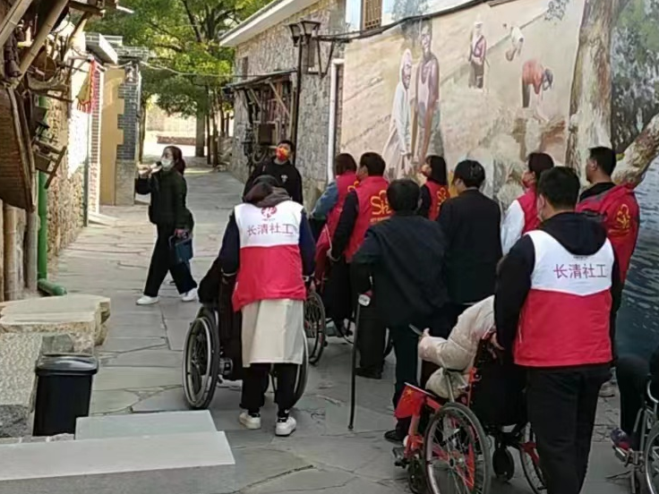 万德社工站和志愿者们推着轮椅带着残疾人朋友们到马套村有名的将军山参观游玩,在前往将军山景区的道路两侧,数十幅制作精良、画面精美的墙画,将这座泰山脚下的山村装点的艺术气息浓郁,一路走来让大家仿佛沉浸在艺术的殿堂不能自拔。进入园区乘坐了划船。“出来划了船,此生无憾了!”一位无法自己出门的重度残疾人感慨的说。跟他一样这些许久没出门的残疾朋友,感慨家乡的环境变美了,空气变好了,河里的水更清澈了,跟这些残疾朋友一起出来游玩非常开心。