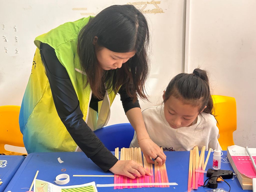 为使孩子们深入了解潍坊的传统文化,社工专门策划了非遗竹编扇子环节。社工通过生动的视频教学,耐心细致地指导孩子们掌握竹编的基本技巧。孩子们围坐一起,全神贯注地注视着屏幕,每一个细微的动作都成为他们模仿的对象。他们的手指在竹片间穿梭,如同舞动的精灵,将平凡的竹片编织成一片片精美的扇面。随后,孩子们运用灵巧的双手,用剪刀裁剪出各自心仪的形状,每一道剪裁都承载着他们对美的追求。最后,加上精心挑选的扇柄与流苏,一把把独具匠心的竹编扇子便在孩子们的手中诞生了。