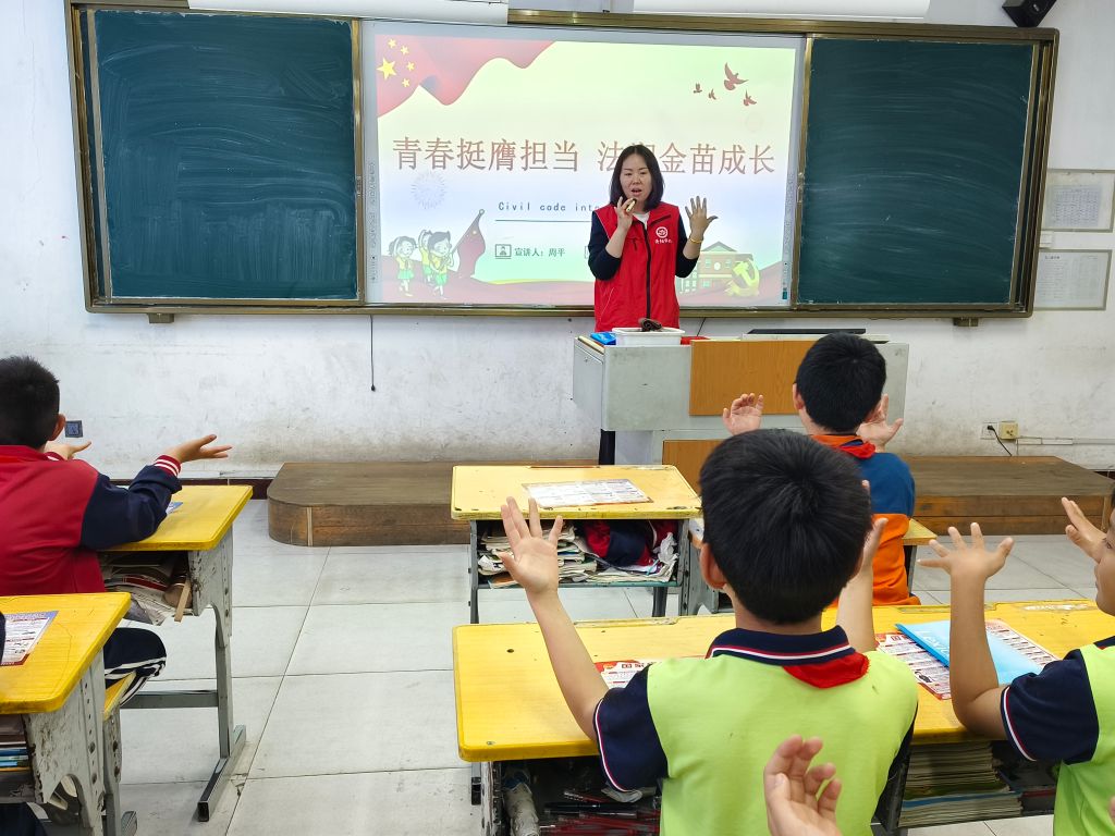 五一假期的欢快脚步渐近,为给孩子们筑牢安全防线,4月29日上午。新市镇社工站联合新市镇司法所、退役军人服务站来到江店小学为同学们送上了一堂别开生面的安全教育课。让安全知识悄然在孩子们心中扎根。