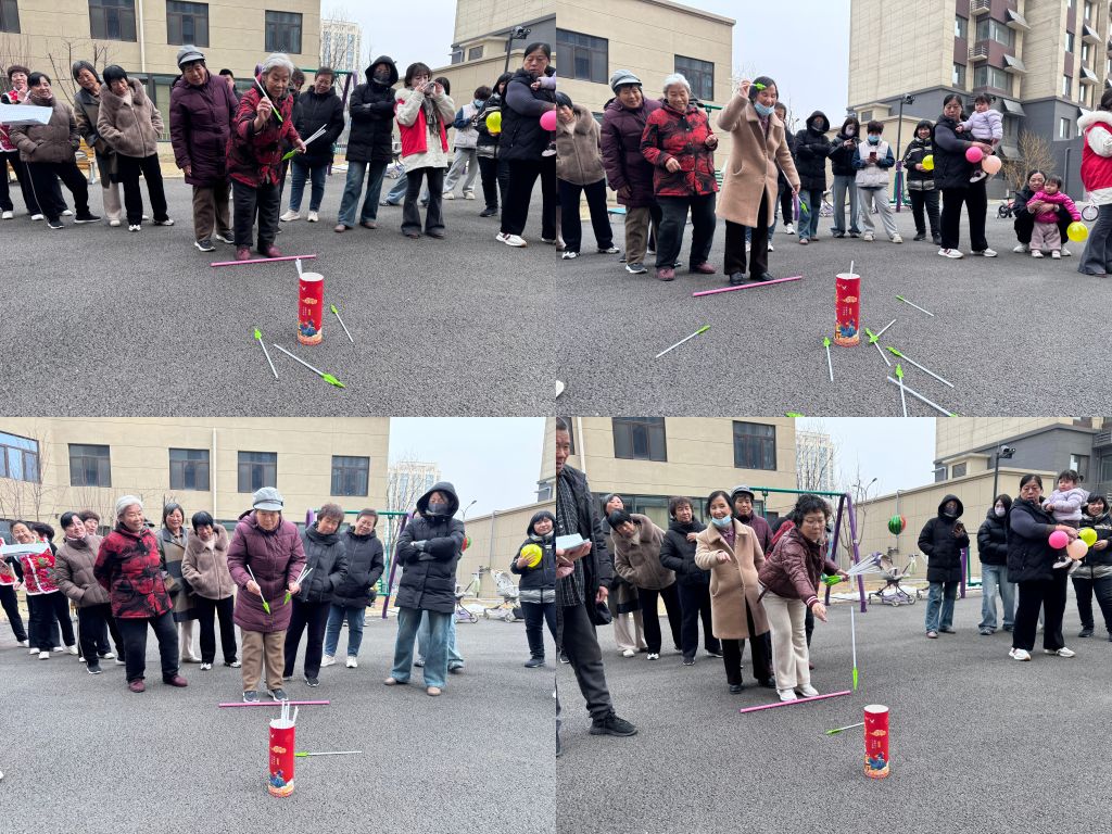 投壶是个考验眼力与臂力的项目。居民们持箭站在投壶点,做好准备姿势开始投掷。有的居民凭借良好的手感和心态,屡屡投中,引得其他居民传来热烈的掌声,忍不住竖起大拇指点赞。