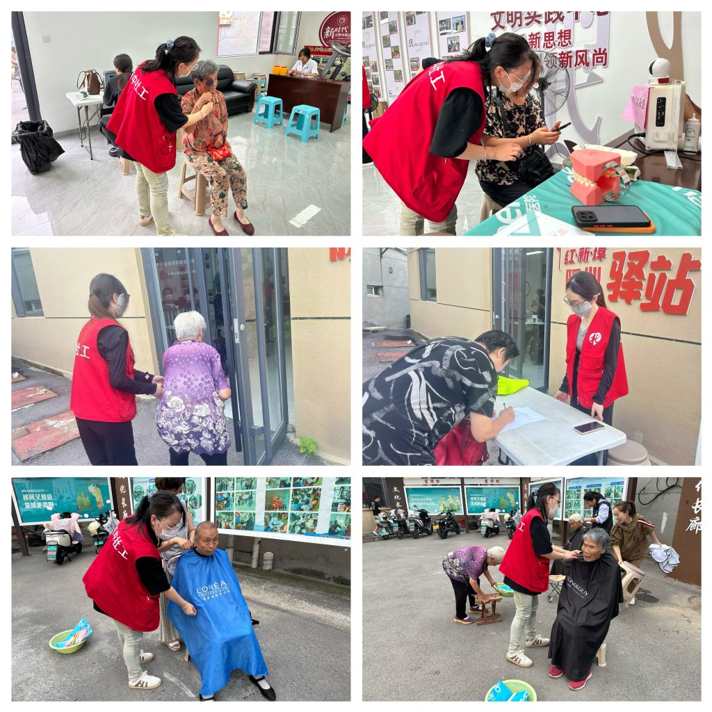 驻区门店的理发师们耐心细致的和前来义剪的每一位居民亲切交谈,按照他们的要求,精心地为他们修剪头发,社工及志愿者则负责维持现场秩序,贴心的为到场的每一位老人安排座位,并与他们拉家常,关心他们的生活,倾听他们的诉求,让每一位老人都感受到了家的温暖。
