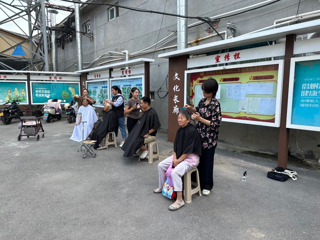 活动当天,现场气氛热烈而有序,伴随着老人们的招呼声,白马山街道驻站社工、社区工作人员、泉泰百居机构志愿者、医护人员和驻区门店的理发师们也早早来到了社区小广场内,活动在紧锣密鼓中拉开了帷幕。