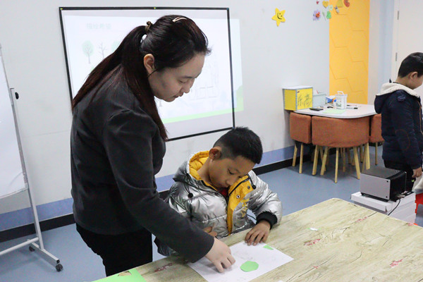 本次活动的主题是“童心绿意”,社工首先以PPT的形式展开活动,分别从植树节的由来、节徽的意义、植树的意义等方面为孩子们展开讲解。让孩子们熟悉植树节,了解树木的种类、形态以及保护树木的方法。当老师问到植树的意义时,孩子们争先恐后的回答到“防风沙”,“增加降雨量”,声声稚气,句句童声,无处不体现出孩子们对环境的保护和热爱之心。“日常生活中我们可以做些什么来保护环境?”在社工的提问互动中,小朋友们积极举手表达,并讲述了自己和家人在日常生活中是如何用行动来支持环保的。“小朋友们都很棒哦,为了净化空气、美化环境、保持生态平衡,我们都要自觉爱护花草树木哦,今天我们要传递绿色梦想,在纸上进行创意绘画……”随后社工为大家介绍绘画的步骤,颜色的搭配及填色、拼贴等技巧,五颜六色的颜料激发了孩子们的创作灵感,孩子们纷纷化身为神笔马良,执笔上色,展开丰富的想象,自由发挥创作,画出了自己心目中树的形象,用绘画这一形式表达了爱绿、护绿情怀。