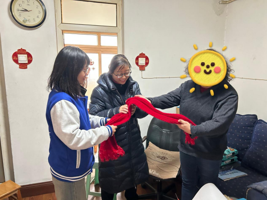 食尽人间烟火,方知浮生未歇。青合站联动社区工作者一同,将志愿者手工编制的围巾、帽子,社区社会组织的老师们写的福字对联送到服务对象家中,一句“你们来啦,最近忙不忙”拉近了社会工作者与服务对象的关系,一个小马扎,一杯暖呼呼的热水,不一会社工已经为服务对象贴好了福字和对联。基于“熟人关系”的入户探访,让服务对象与社会工作者之间的信任关系更加牢固,服务对象诉说着多年来居住社区的历史,生活环境的变化,社会工作者倾听记录着没有见识过的新奇事物以及生命故事。