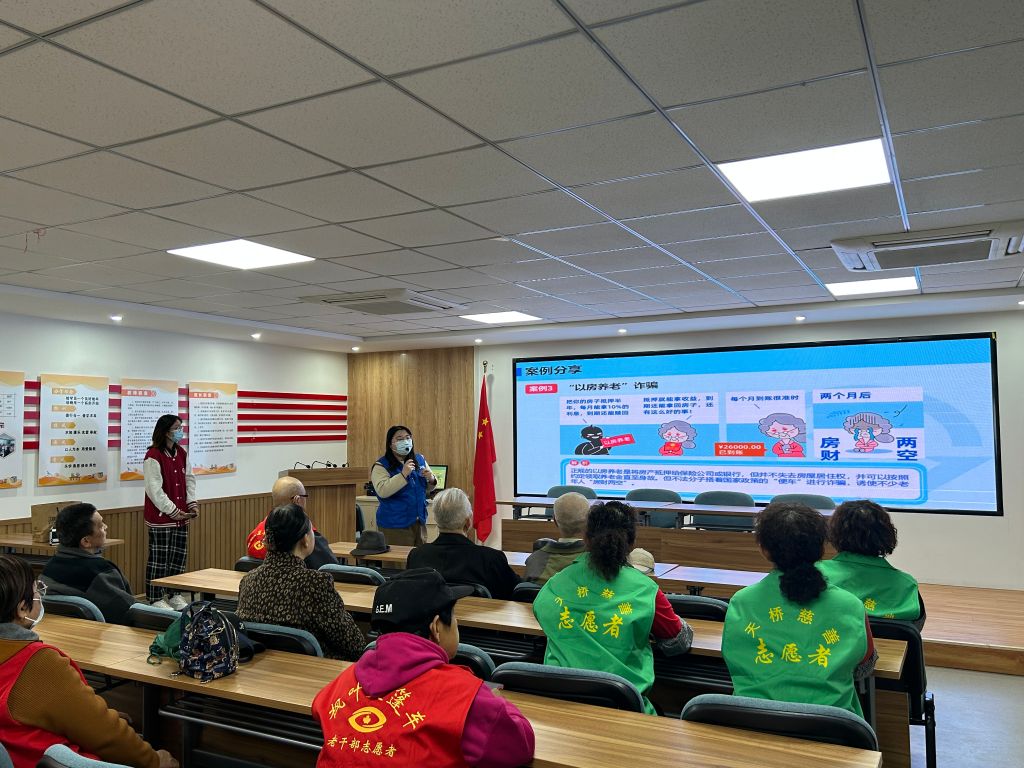 为切实维护老年人的合法权益,提高老年群体对电话诈骗、投资理财诈骗等犯罪行为的防范意识,加强推进“五社联动”关爱“一小一老”的社工日宣传活动,北坦街道社工站联合北关社区邀请“蓝马甲”志愿者为老年人开展了一场防诈骗宣讲活动,提高老年人防诈骗“免疫力”,守护老人们的“钱袋子”。
