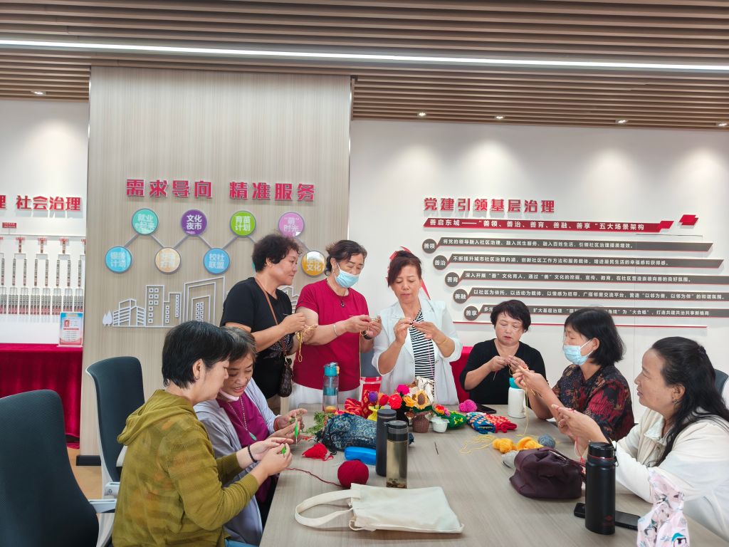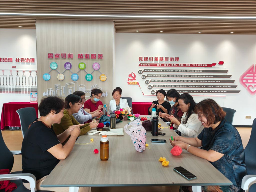社工通过走访了解到作为社区的老人喜爱手工制作的比例较高,但是自己没有能力,需要有专门的人来组织教授手工制作,同时老人也希望扩大自己的人际网络和娱乐方式。结合本社区的实际情况,社工决定以兴趣小组的形式开展手工课堂,一方面通过学习扭让老人掌握一门简便、实用的手艺,借以消磨时间,为组员们搭建一个相互交流的平台;另一方面通过开展手工兴趣小组挖掘志愿者,培养社区骨干力量,同时使其发展成常态化小组活动。9月12日,8名热爱钩织技艺的老人参加了本次小组第一节。