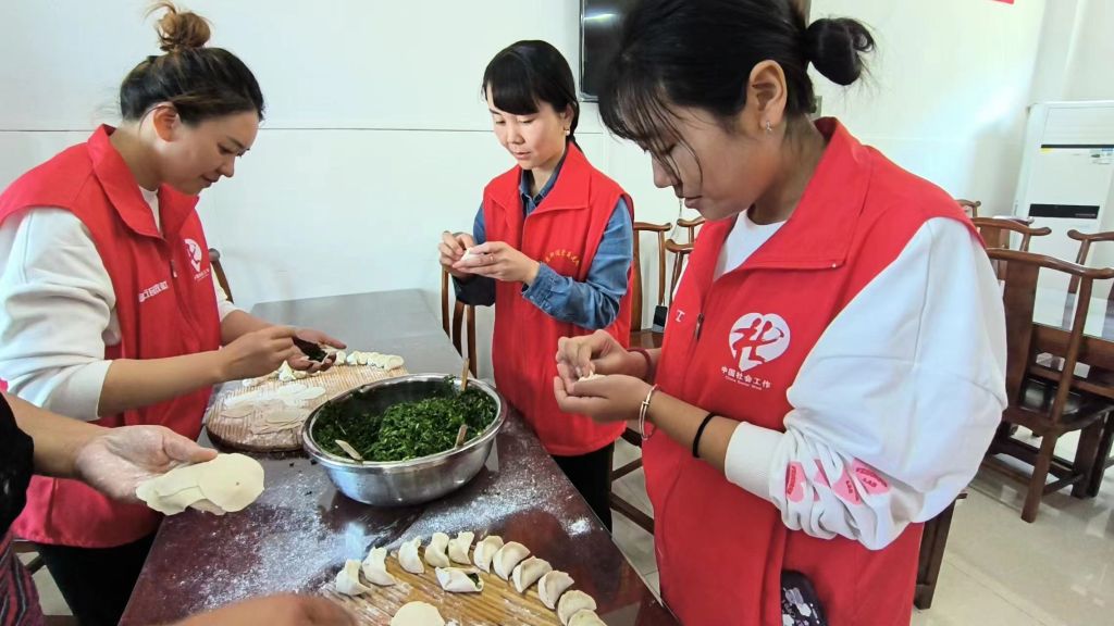 活动分为两部分进行,分别是“社工+志愿者”包饺子和休闲娱乐暖心服务。在“社工+志愿者”包饺子中,社工早早到达现场准备包饺子所需食材,之后与志愿者们开始“摘、洗、包”一条龙服务,大家分工有序,忙而不乱。餐桌旁,大家互相切磋,拿出自己的看家手艺,大家有说有笑,现场气氛和谐,不一会儿,桌上就摆满了包好的饺子。