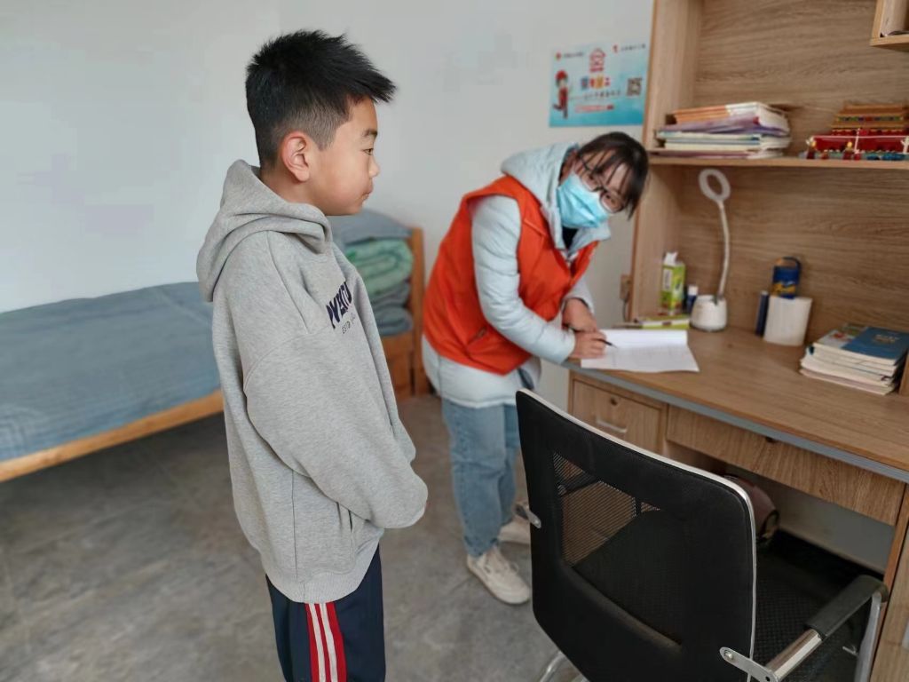 在入户探访的过程中,每到一户家庭,社工们都会与孩子们进行愉快的交流,了解孩子的兴趣,分享孩子最近的喜悦,引导孩子说出最近遇到的困难、心事,并对其进行正确引导,两位社工和志愿者为孩子检查作业,鼓励孩子们要自立自强,努力学习。同时社工小孙细心叮嘱监护人们哪怕在外工作忙碌,也要多多关心孩子的生活及心理健康问题,并根据具体的家庭情况,建议家长要多与孩子沟通交流。在社工要离开时,一位内向腼腆的小女孩依依不舍的拉着小孙的手说:“阿姨,谢谢你们来看我,欢迎你们常来!”