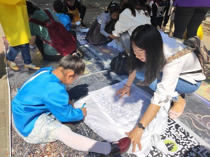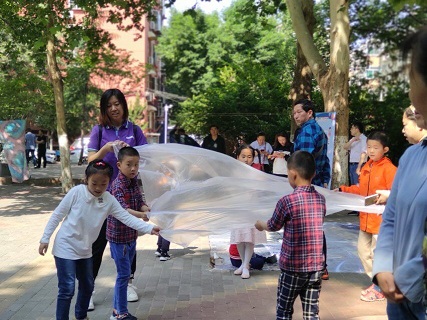 十月怀胎呱呱落地,母亲孕育了可爱的小生命,随着时间流逝,小生命长成了大孩子,懂得了心疼妈妈、表达爱。5月12日上午,为了让孩子们送给妈妈一份独一无二的礼物,甸柳一居伴童服务队链接辖区资源,联合博林少儿艺术教育机构,在社区广场组织开展“因爱绚烂——送给Super Mama的扎染披肩”母亲节活动,现场有15组家庭参加。