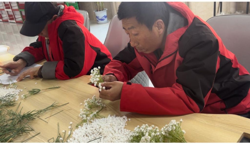 经过一段时间的努力,漂亮的仿生花绽放了。一束束白色的小花被精心地用丝带绑扎起来,形成一片独特的花海,迸发出无限的生机与活力。仿生花被赋予了新的意义,它是残疾朋友们用耐心、毅力和爱心浇灌出来的成果,是他们对生活热爱的表达。