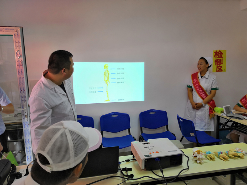 活动伊始,漱玉平民的工作人员简单为大家讲解了关于秋季养肺的小常识,例如多吃枇杷、水梨与白萝卜等白色食物。随后便开始进行关于骨质健康知识的讲座,专家结合人体模型针对常见骨关节疾病的诊疗进展和预防措施进行宣讲,在宣讲过程中,社区居民对颈椎、肩关节及膝关节的治疗与保健方法尤为关注,面对社区居民提出的问题,专家也进行了解答。在讲座结束后,由专家与漱玉平民的工作人员一同为社区居民进行免费的骨密度及血糖血压的检测,专家及工作人员亲切的与前来检测的社区居民交流并仔细询问居民的身体状况,认真听取居民讲述病症,并针对检测结果提出预防保健方案,对饮食结构方面给予指导。