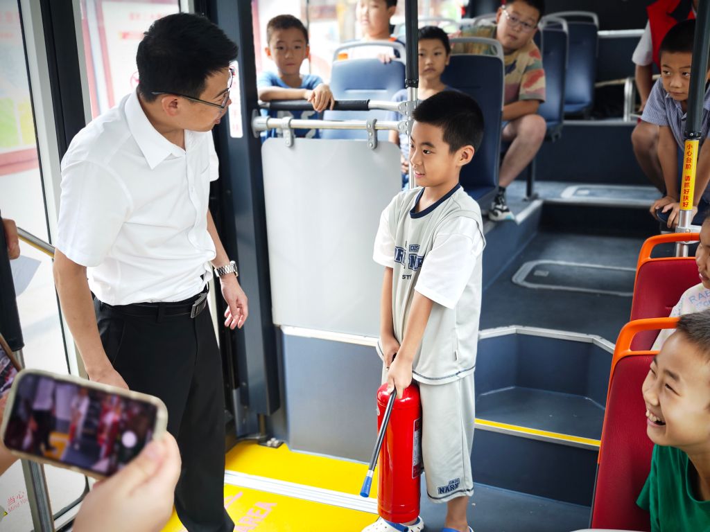 简单的热身环节过后,舜耕街道社工站邀请到济南公共交通集团有限公司南部分公司一队,为小组成员带来一堂生动有趣的公交安全知识课。“坐过公交车的小朋友请举手”,安全课开始后,公交驾驶员李老师先提出一个问题,几乎所有小组成员都举起了手。随后,他图文并茂地讲述了公交出行的各类安全注意事项。活动过程中组员们对公交安全知识表现出极大的热情,为了让小组成员更深入学习到公交车上的,各类应急设施的规范使用,特别向组员介绍了安全锤和灭火器等设施的作用及使用注意事项,组员们听得非常认真,纷纷表示要将所学知识分享给父母和家人。