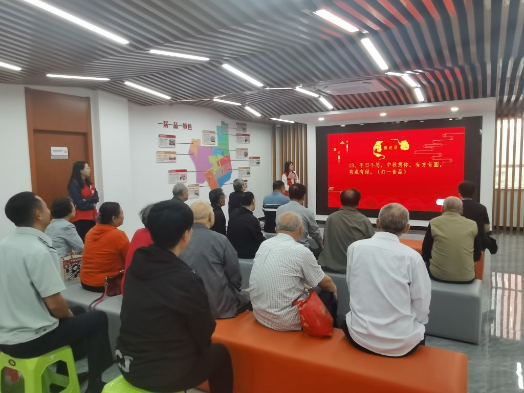 活动伊始,堤口路街道社工站组织辖区居民有序入场,并进行暖场小游戏猜谜环节,居民们喜笑颜开,目光紧紧跟随着主持人,好像在说:“快点开始游戏吧!我们已经等不及啦。”社工以新颖的形式带领居民“玩乐”,现场的叔叔阿姨兴致勃勃地相互探讨,碰撞出智慧的火花,加深了彼此之间的了解与联系。游戏最后社工通过计分的方式对游戏中的前三名送上奖品。