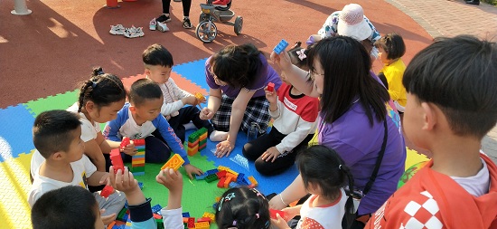 绿阴生昼静,孤花表春余,不知不觉济南的夏天已经来临。随着气温节节攀升,吴家堡街道社工站的“童伴计划”也开始升温。社工们拿着活动道具布置场地时,便引起了周围很多孩子和家长的围观。“小朋友来和社工哥哥姐姐们一起玩吧!”在社工的鼓励下,小朋友们主动加入到游戏中来。