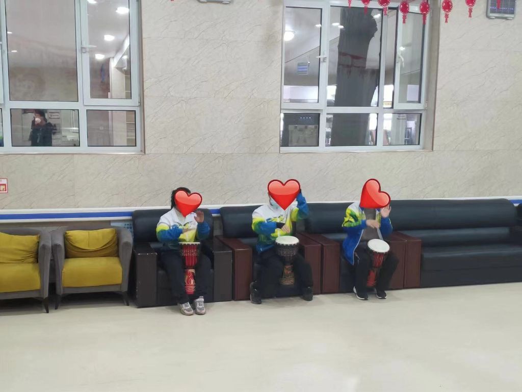 伴随着一阵阵的音乐声,社工又走进了娱乐室,残疾人们在敲击非洲鼓编排歌舞,他们脸上洋溢着笑容,热情的给我们展示他们的歌舞,一曲舞毕,大家送上了热烈的掌声为他们喝彩。他们展示完之后,社工与他们进行了近距离的接触与交流,通过沟通,社工知道他们非常喜欢音乐,想通过自己的努力登上更大的舞台。社工对他们的需求及时进行记录,方便后期跟进服务。