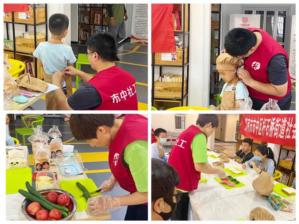 此次活动,社工还邀请了辖区困境儿童加入到了小组活动中。活动过程中,孩子们从陌生逐渐熟悉,在社工的带领与安排下,使孩子们对小组产生了初步的信赖和安全感,以制作简单的食物为手段,倾听孩子们的想法,引导孩子们分享与总结,活跃了现场活动氛围,使组员对活动有了更清晰地了解和认识,也为小组的后期开展奠定了良好的基础。