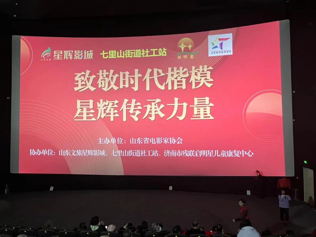 为宣传张桂梅老师无私奉献精神,发挥“时代楷模”示范与引领作用,在12月3日世界残疾人日到来之际,七里山街道社工站链接山东省电影家协会、山东文旅集团星辉影城,联合济南市残联启明星儿童康复中心、海珀社区、卧龙社区、泉景社区、二七南路社区、郎南社区、郎北社区,邀请辖区困难群体、残疾人家庭、退休老教师、老党员共同参与“致敬时代楷模,星辉传承力量”公益活动。