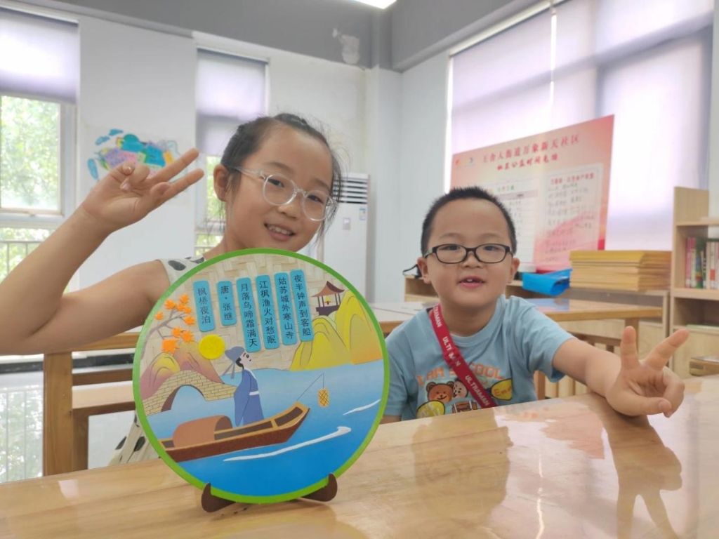 社工通过游戏“看图猜古诗”,消除组员之间的紧张感,了解组员的诗词量和掌握程度。飞花令诗词接龙,让组员在游戏中接触到大量的诗词,增强他们对诗词的认知和兴趣,同时提高了他们的诗词应用能力和表达能力。通过古诗词贴画DIY的形式,让孩子们在动手实践中感受古诗词的韵味与魅力,弘扬诗词优秀文化,同时锻炼他们的动手能力和想象力。