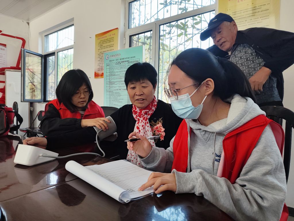 社工与志愿者早早地来到幸福院,义剪义诊有序开展。义剪的社工热情地询问老人家的剪发习惯,仔细地落下每一剪刀。老人们看着剪完后满意的发型,都乐得合不拢嘴,连声道谢。志愿者还为老人们测血压、测血糖,并耐心地听老人们讲述自己的病症,在了解他们的身体状况后提供了专业化、针对性的建议和指导,对于有高血压、高血糖的老人,社工及时将测量情况告知村两委成员,让其时刻关注老人身体健康情况。