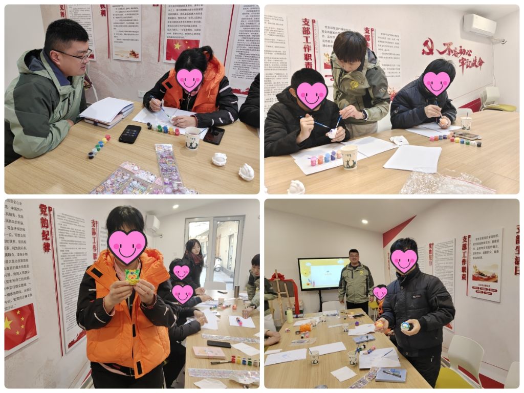 通过“彩绘石膏玩偶”的沉浸式心理绘画,组员在音乐声中勾画自己的画面,一半是快乐,一半是艺术。组员们尽情挥舞画笔,锻炼动手能力,发挥想象力,创造属于自己独一无二的作品。