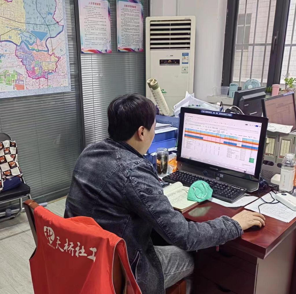 因疫情防控需要,天桥东街社工站外派社工协助街道“追阳专班”开展流调工作,日夜兼程,一天十五个小时的坚守,抢时间拼速度,只为及时阻断疫情传播风险。一边紧盯着电脑屏幕上传来的各种数据、信息和指令,一边不停和社区通电话,是追阳专班的常态;第一时间接收采样信息,第一时间排查落位,第一时间上门管控,不落下任何一人,不延误任何一刻,是追阳专班的职责。疾控中心每推送一条混阳信息,就立即组织值班人员对现场管控,安排医护上门核酸采样,样本送检,快速处置混管阳性人员的“追阳”工作。除做好本辖区的“追阳”工作外,协助街道积极对“追阳”工作繁重的兄弟街道伸出援手,携值班医护深入任务社区开展“追阳”工作。