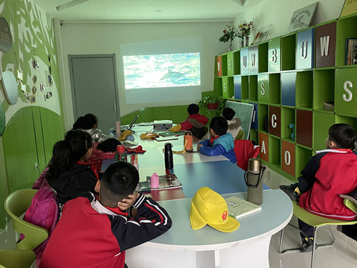 活动伊始社工告知小组成员此次活动为本期读写会活动的最后一次活动,随后展示了读写会开展以来组员们阅读时留下的照片“这个是我!”、“你看咱俩在读有关UFO的书。”、“这个是我读父与子的时候。”小组成员在照片里看见自己的身影,积极地和身边的小伙伴一起分享;之后社工通过展示照片带领着组员回顾往期读过的图书,小组成员感叹时间过得如此之快和已经读过这么多书。社工引导成员分享了这两个多月以来的收获和感受;随后为小组成员播放了董卿、白岩松等主持人对于阅读的看法及自己的良好阅读习惯的视频。组员认真的观看表示自己也要这样坚持阅读,成为一个“厉害”的人;最后社工为大家播放了电影《海洋》的片段,组员表示很多海洋生物都不认识。社工引导大家带着疑问回家进行海洋类书籍的阅读,并鼓励大家要继续保持良好阅读的习惯。