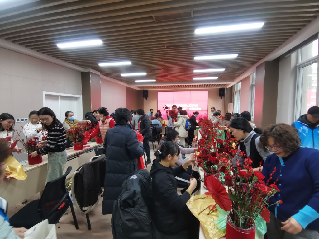 一岁之末为“腊”,意为新旧交替,辞旧迎新。南辛庄街道社工站发挥服务者的角色,同社区联合组织社区志愿者开展本场活动。活动现场,映入眼帘的是一朵朵红色的花卉,洋溢着喜气洋洋的节日氛围。