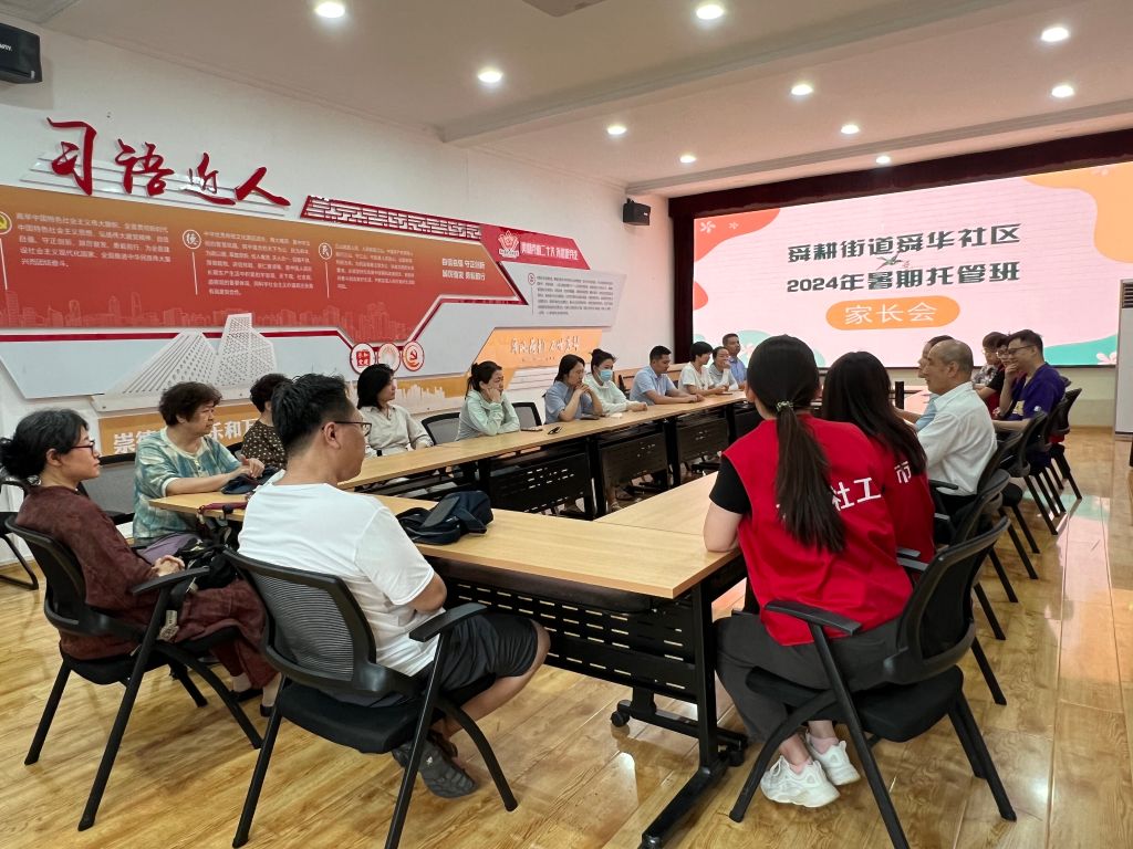 7月12日下午,社工站联合社区组织青少年家长召开暑托班“开班仪式”暨家长会,会上介绍了本次暑托班志愿者资源及特色课程资源,特别强调青少年在暑托班的纪律、安全等一系列问题,对家长们提出的问题逐一解答。