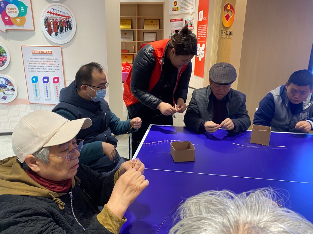 社工为小组成员教授串珠技巧