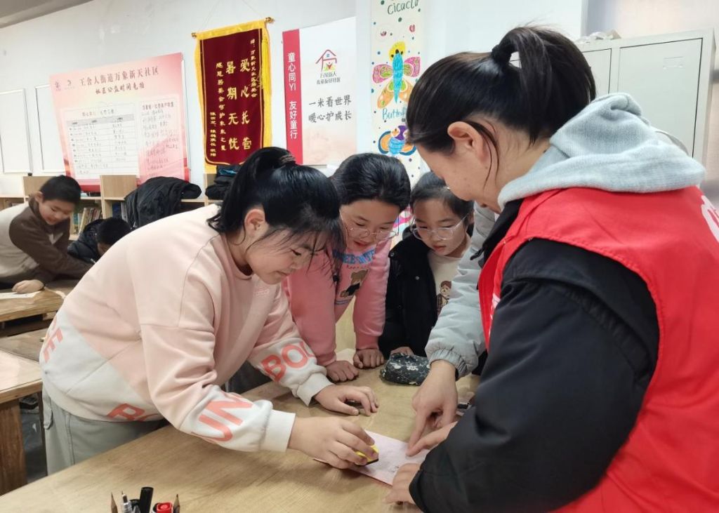 王舍人街道社工站开展“春节里学非遗”儿童非遗文化学习体验小组
