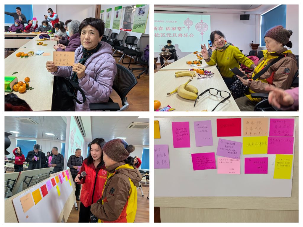 活动最后,社工特别策划了“邻里话祝福”环节,引导大家在卡纸上写下了自己的新年愿望和祝福,小小的卡片写满了对2024年的期待,在新年的祝福声中本次活动拉下帷幕。
