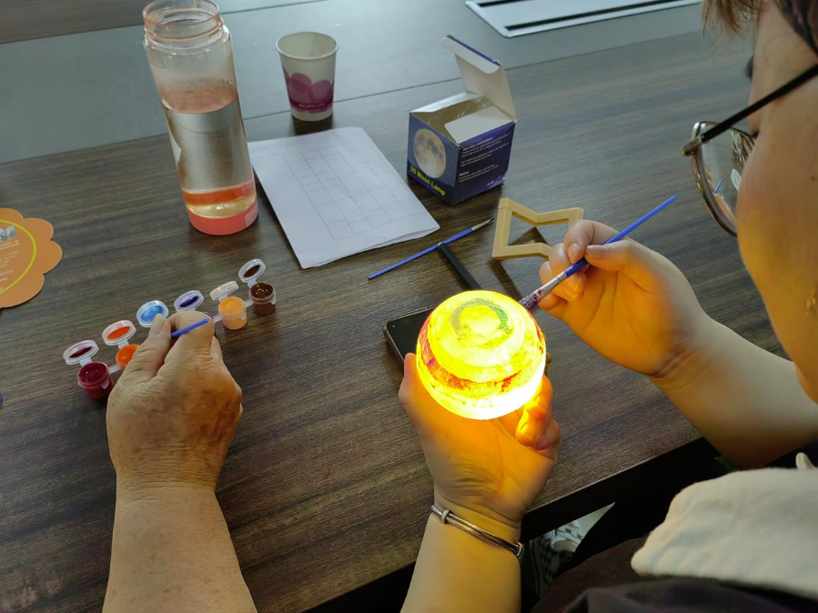 在讲解完之后,大家也都跃跃欲试,迫不及待地想要制作自己的小夜灯,开始制作之后,大家按照顾社工和志愿者教的步骤一步步来,居民们充分发挥自己的想象力,在小夜灯上加上了自己喜爱的精美图案。不一会儿,一盏盏造型精美的小夜灯就完成了,一通电,就变成了一个个生动的玻璃灯,大家看着成品,脸上洋溢着灿烂的笑容。