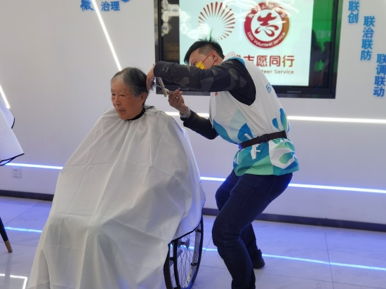 解放路街道社工站着力为一老一小提供精准帮扶提供精准优质的差异化、个性化服务,努力让孩子们享受健康快乐的童年,让老年人享有幸福美满的晚年。在本次义剪中共服务老年30余人,儿童8余人。社区老年人陆续领着号码牌排队剪发,义剪志愿者们发挥自己的专业,细心为老年人修剪头发,设计发型。其间还有几个特殊的“专属剪发轮椅”,老人说“自己平时剪发都需要让家人带着去理发店很麻烦,这次就在家门口太方便了,自己不用折腾,孩子也不用折腾,真得是为我们提供了实实在在的帮助。”老人的话不正是说出了我们举办此次活动的目的,为社区老年人和儿童提供实实在在的服务。
