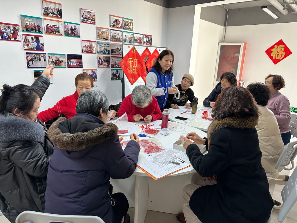 活动开始前,社工首先为居民朋友们介绍了元宵节花灯的来历。古时候的花灯是寓意驱魔降福、祈求光明的,也是代表人们对平安团圆的期盼,希望生活能够和顺、幸福、美满。然后,社工向大家展示了一个红红的晶莹剔透的串珠灯笼成品,着实吸引了居民们的眼球。前来参加本次活动的居民对于串珠或多或少都有一定的功底,但对于灯笼则是第一次接触,社工将制作灯笼的材料分发给大家,并详细讲解了灯笼的制作方法、步骤及注意事项。居民们认真聆听,并按照社工的示范一步步操作,左过1右串3,左过2右串2......纤细的鱼线在红彤彤的珠子之间来回穿梭,大家边学边做,现场气氛热闹又温馨。